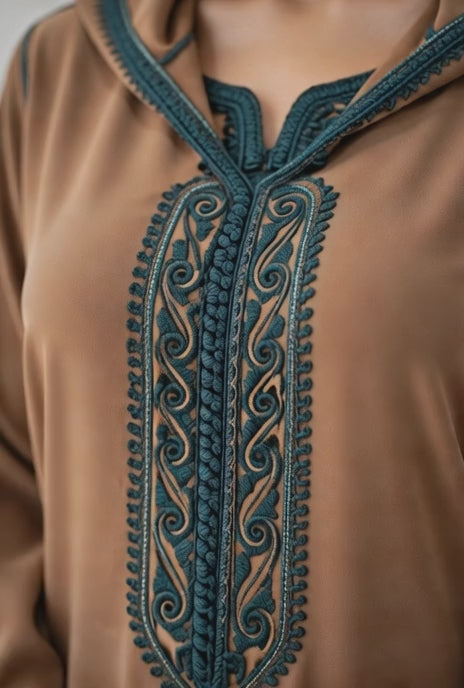 تمتعي بجمال التراث المغربي مع طقم "أصالة" اللي كيجمع بين قطعتين: جلابة راقية بـ "خدمة المعلم" الأصيلة، وقفطان داخلي خفيف ومريح بنفس اللون البني الهادئ. هاد الطقم صممناه للمرأة اللي كتبغي تبان "هماوية" وراقية، سواء في الخرجات اليومية أو المناسبات العائلية.