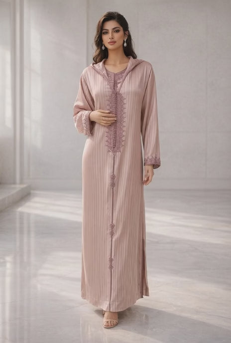 تمتعي بإطلالة مريحة، محتشمة، وراقية مع طقم "نسمة" المكون من قطعتين: جلابة باللون الأرجواني (الموف) الهادئ، وقفطان داخلي خفيف ومريح. صممنا هاد الطقم للمرأة اللي كتبغي تجمع بين الحشمة، الراحة، والشياكة في الخرجات اليومية أو المناسبات العائلية البسيطة.